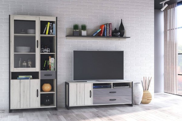 Тумба комбинированная Техно Дуб Крафт белый/Серый шифер 678210