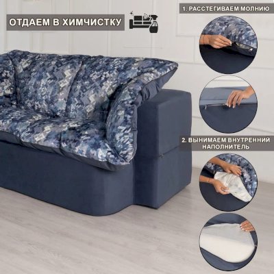 Еще одно преимущество данного дивана - наружный чехол легко снимается благодаря застежкам-молниям, которые легко можно снять и отдать в хим. чистку.
